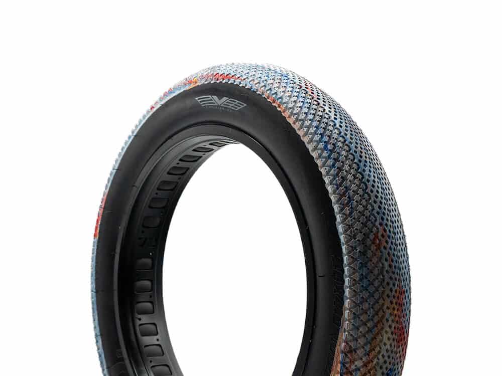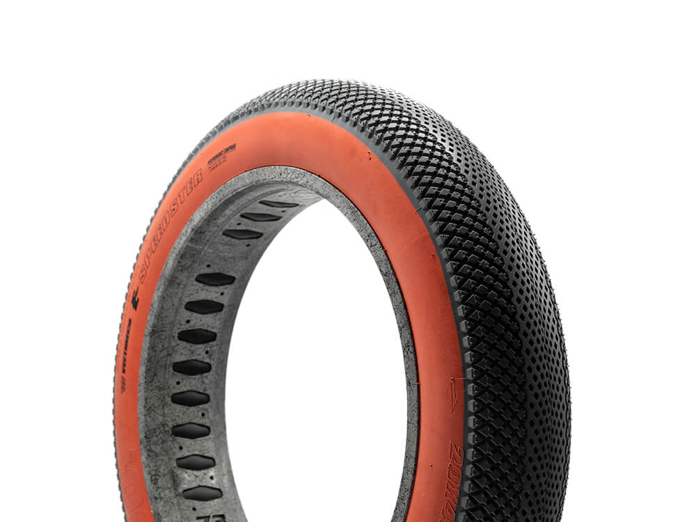 Les pneumatiques VEE Tire Co. sont parfaitement adaptés aux SUPER73. Conçus spécialement pour les vélos équipés de pneus en 20 x 4 pouces, ils offrent des performances optimales sur route comme sur piste. Le modèle Fat Bike Speedster garantit une excellente vitesse de roulement avec un minimum de résistance. Sa bande de roulement centrale en nid d’abeille assure longévité et adhérence, que la route soit sèche ou mouillée. Les flancs en losange renforcent la tenue de route en virage, tandis que la structure type ballon procure une sensation de confort et de légèreté à chaque sortie sur votre SUPER73.